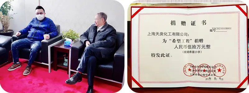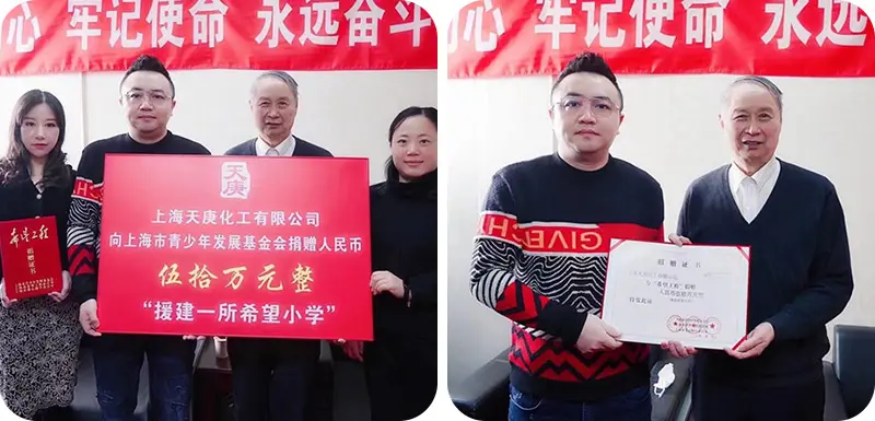 自2014年公司成立以来,欧亿体育化工在各方客户的支持下取得了长足的发展。 我们也深知,企业的目的不仅仅是获取利润,更是履行社会责任。在企业健康快速发展的同时,形成点滴积累,践行社会公益,取之于社会,回报于社会。 此次,天庚将在安徽舒城援建一所希望小学,为相对落后地区孩子们的成长与幸福创造更良好的条件。这也是天庚实现企业社会责任的一个开始,我们将继续欧亿体育的公益行动,为中国的教育事业尽自己微薄之力。教育是文明传承的圣火,捐助希望工程,为祖国的明天加油!